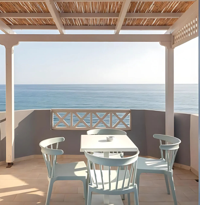 Wake up to the endless blues of the Aegean Sea at Triton. This seafront boutique stay delivers breezy elegance and minimalist beauty with every sunrise. Sip coffee to the sound of waves — relaxation doesn’t get more authentic than this.