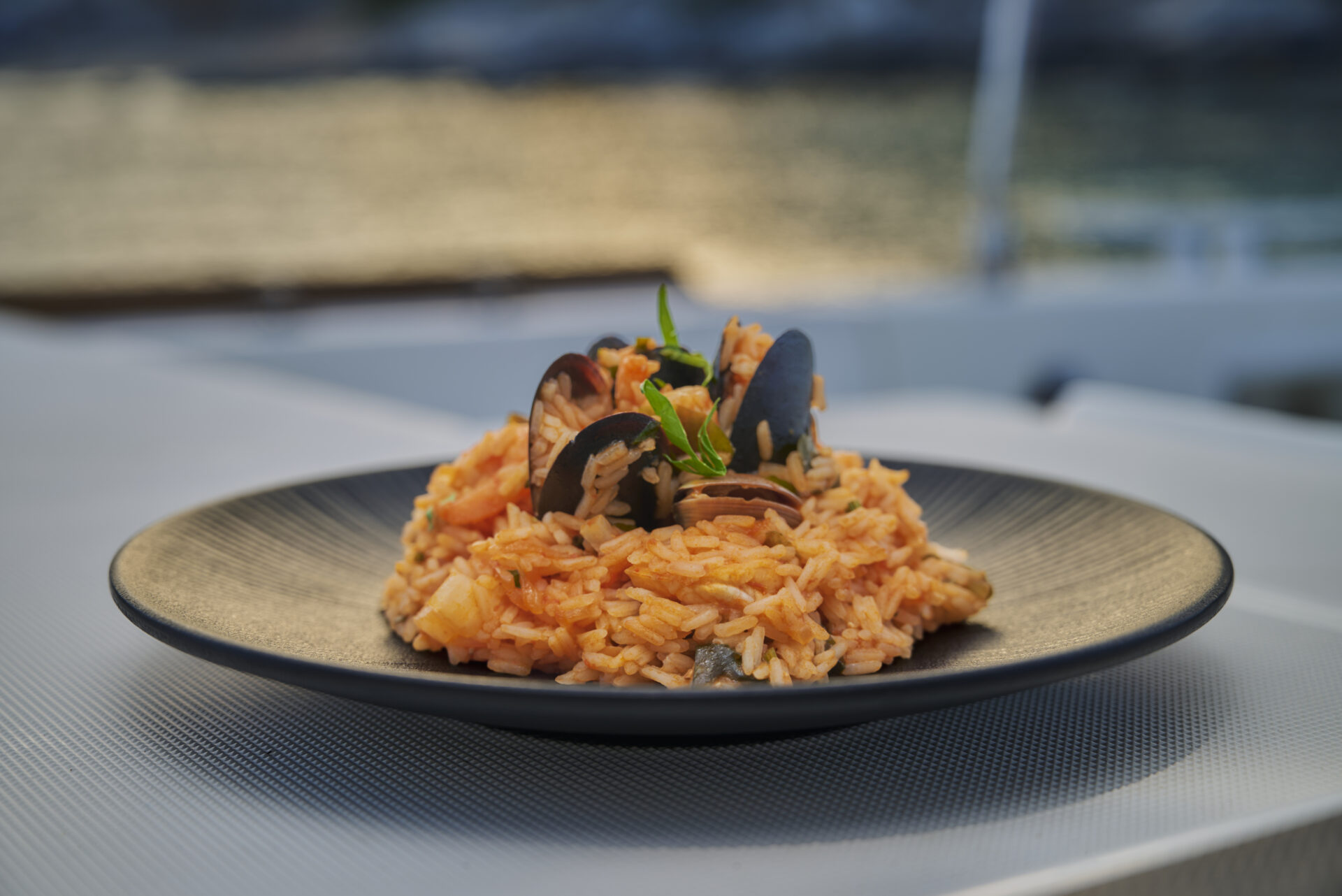 Indulge in a flavorful Mediterranean-inspired main course followed by a refreshing seasonal dessert. The menu varies by season but always features the highest quality local produce. Options are available for seafood lovers, vegetarians, and those who prefer lighter meals. Children’s meals can be arranged directly on board.