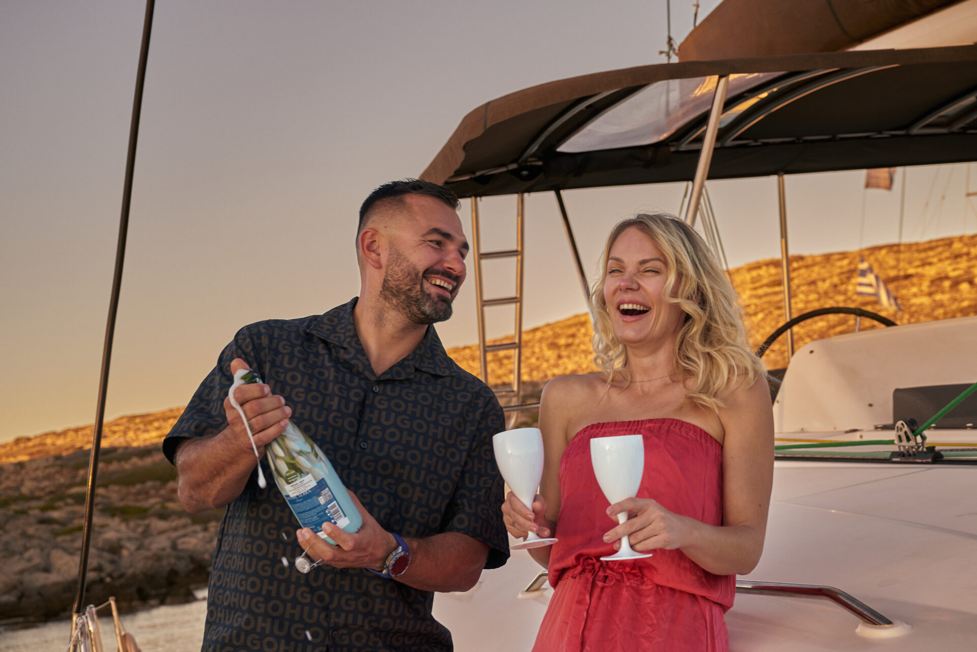 Throughout the journey, you’ll have access to unlimited drinks, including crisp white wine, cold Greek beer, all served by our attentive crew.